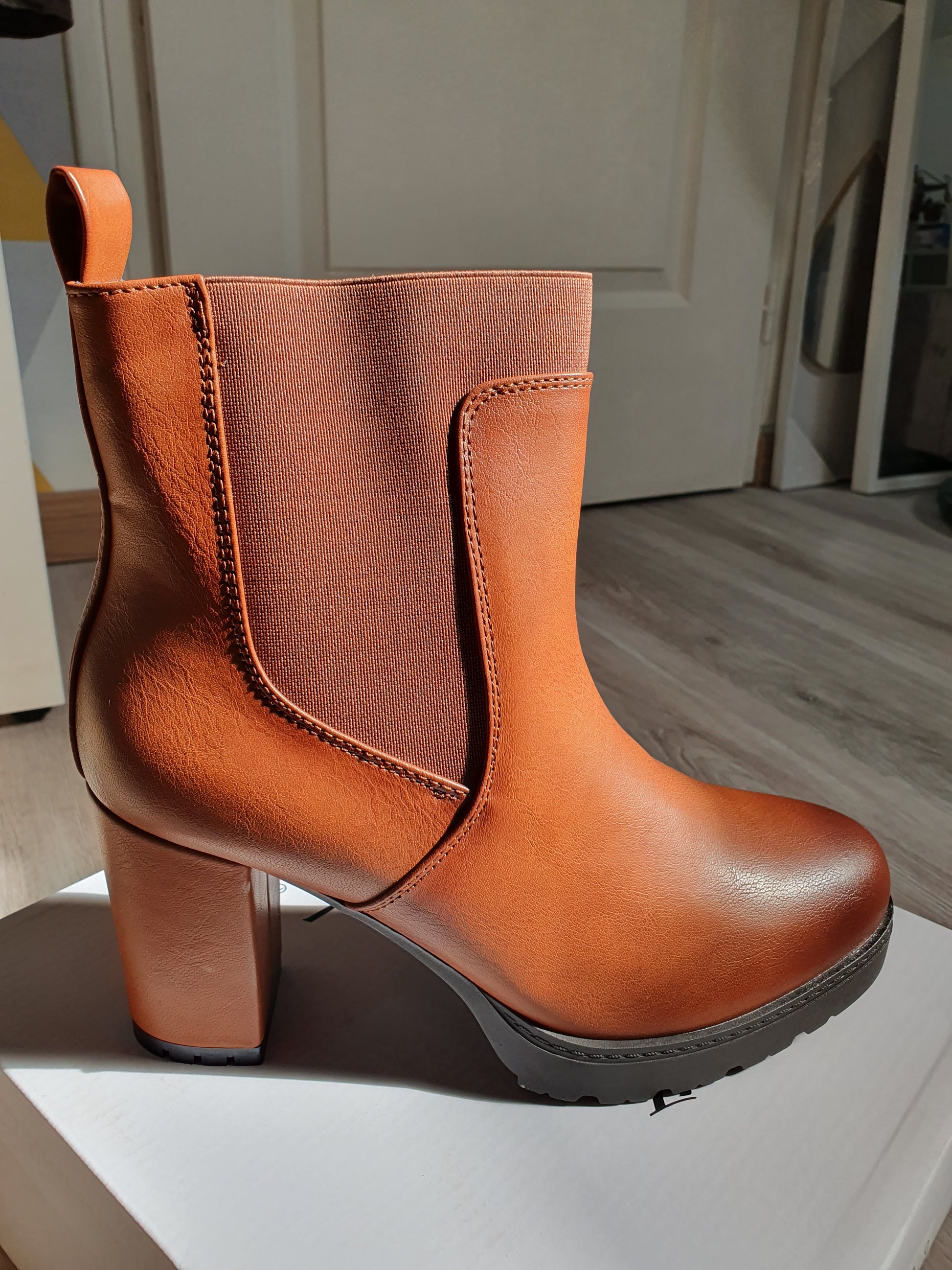 Jolies bottines fourrées coloris camel.