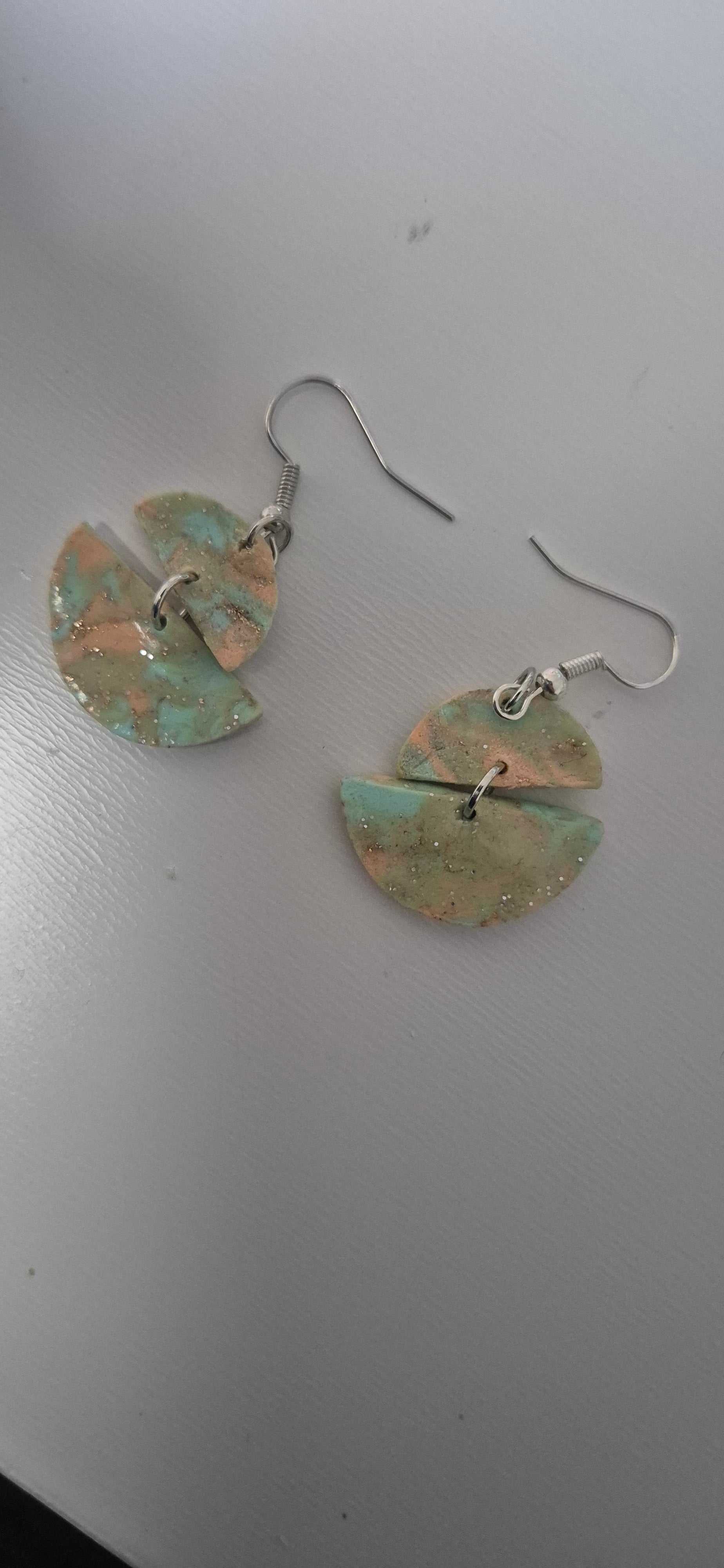 Boucles d'oreilles fait main en pâte fimo,paillettes et résine.