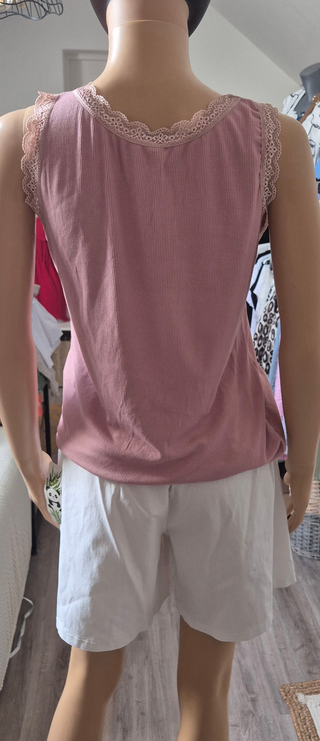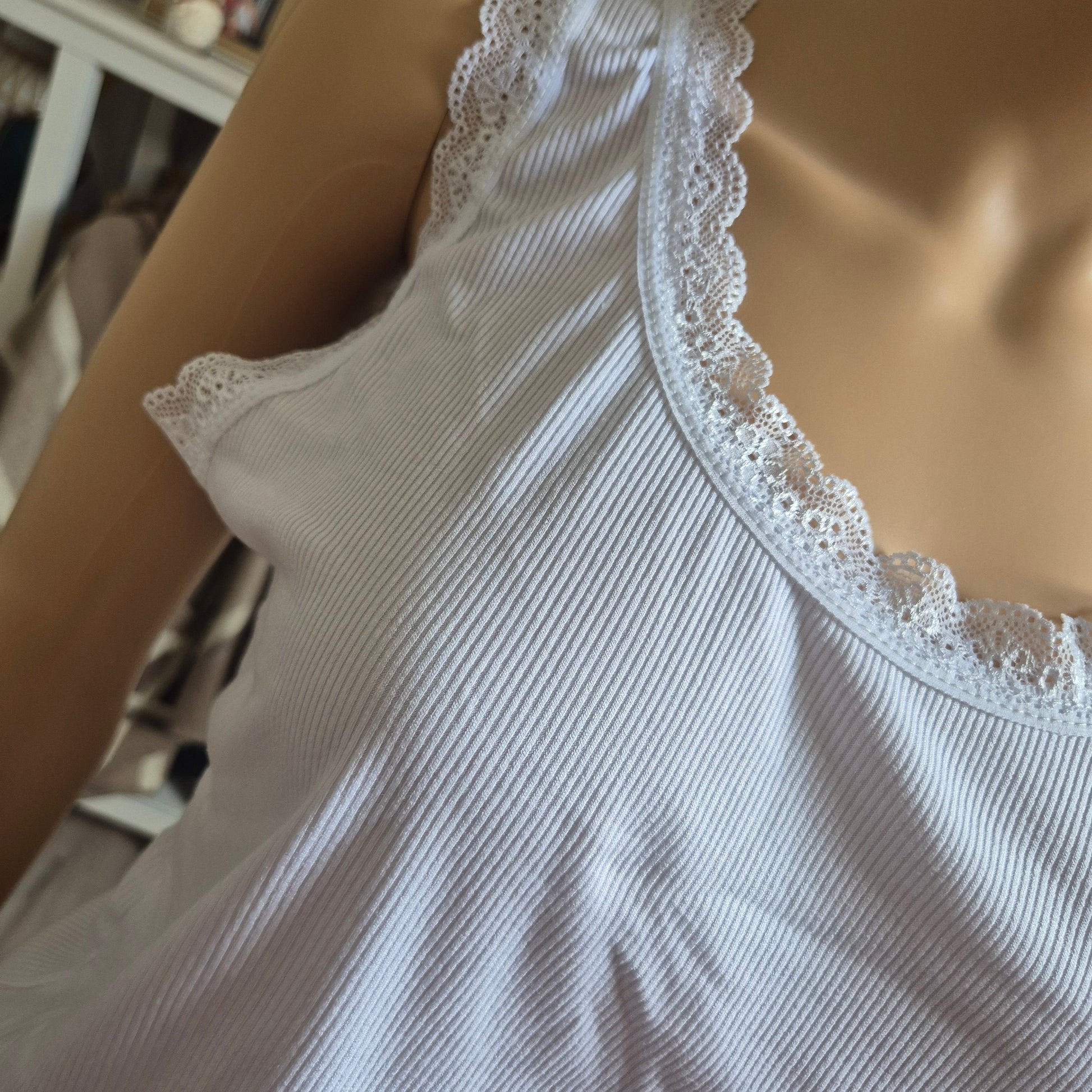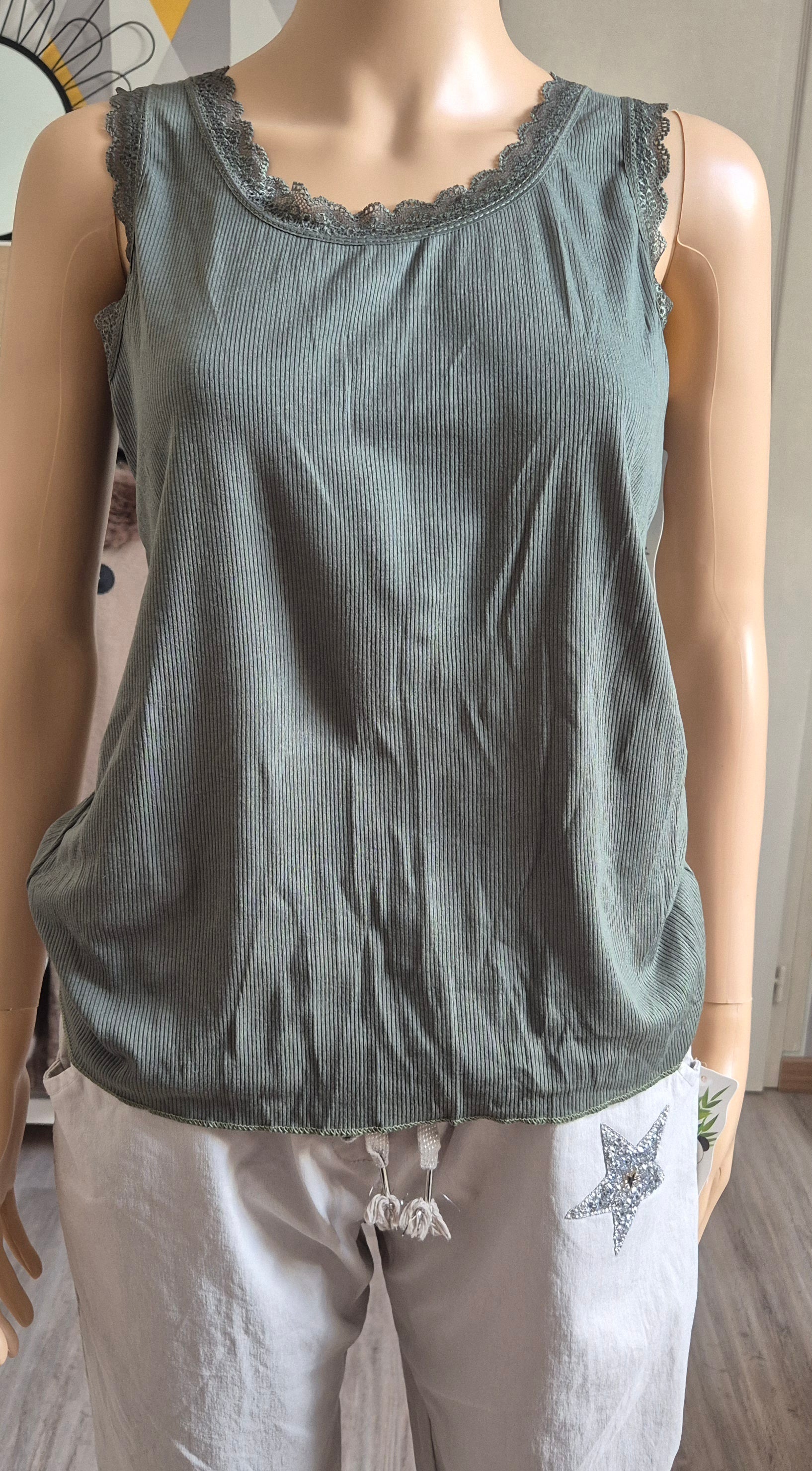 Débardeur dentelle côtelé, version GRANDE TAILLE, la matière est très extensible, stretch. La longueur du top est de 63 cm, elle peut convenir d'une taille 38 à 46