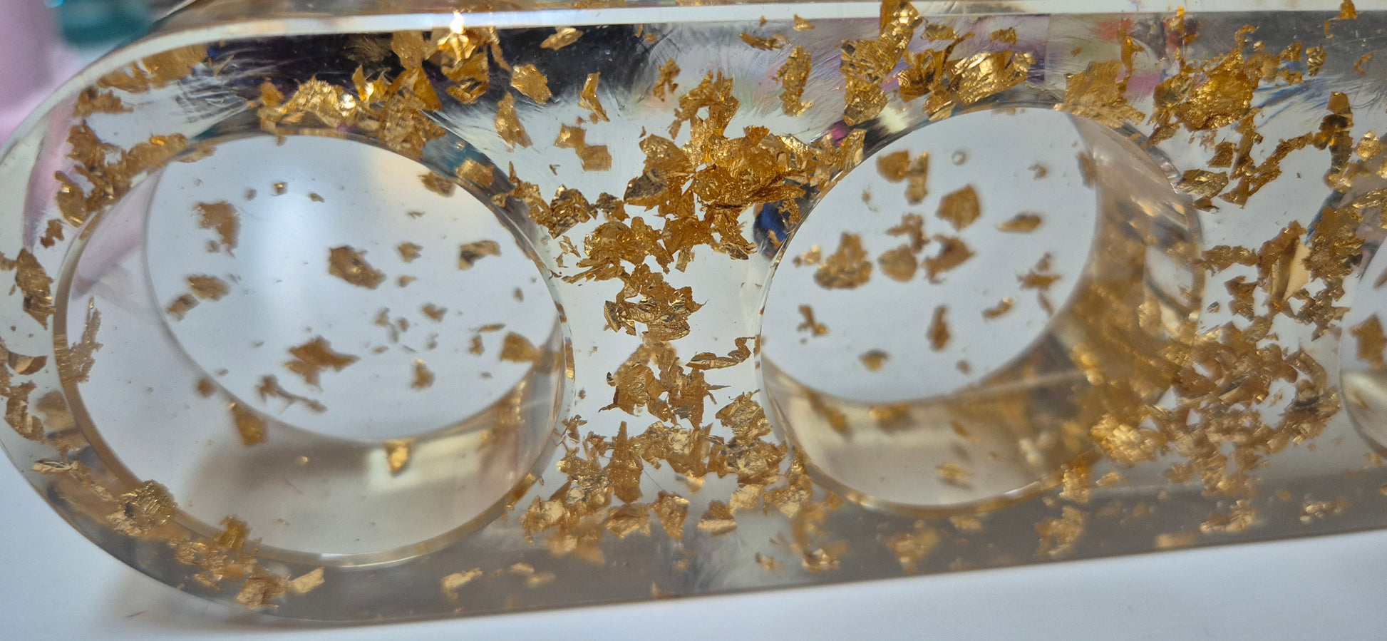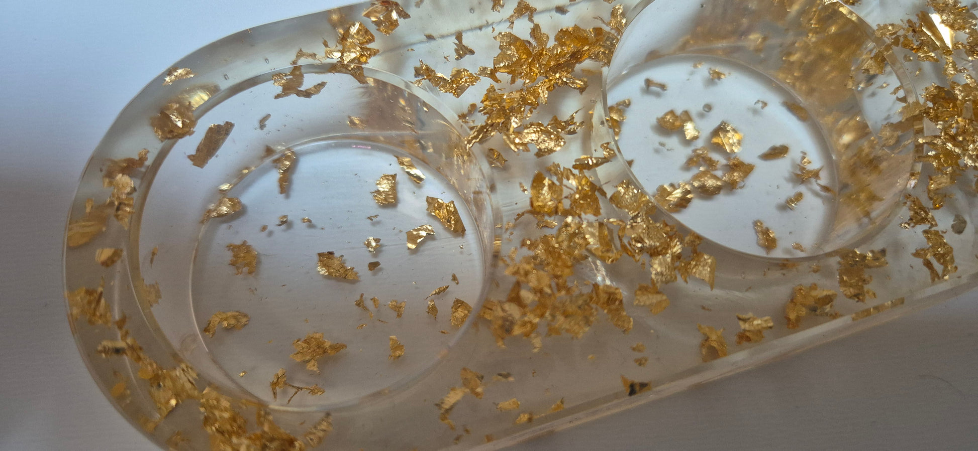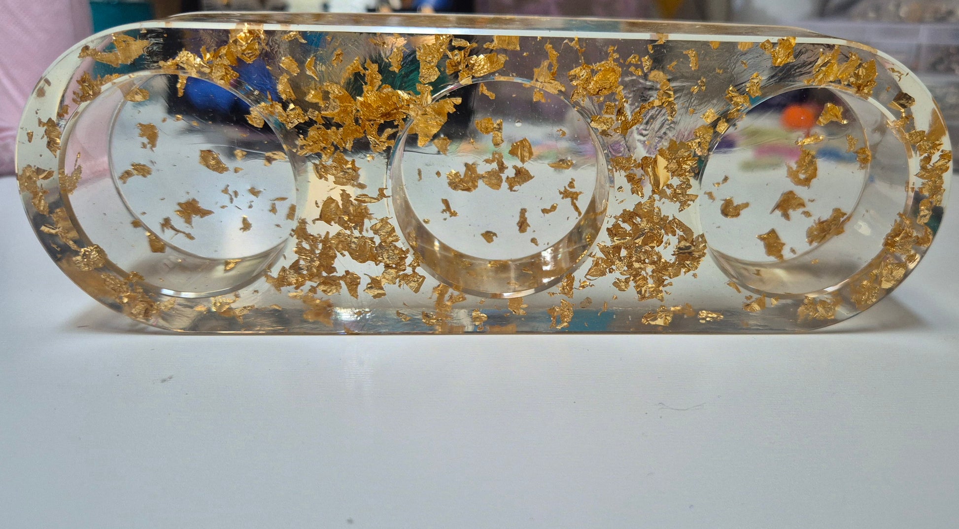 Jolie porte bougie en résine, et feuilles d'or fait main.