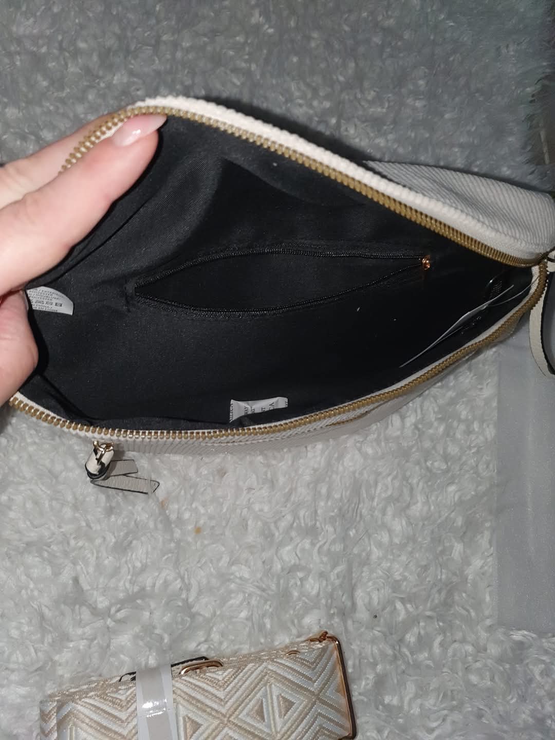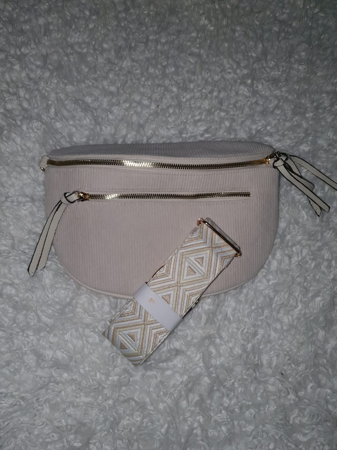 Sac banane avec double zip aspect velours, bandoulière amovible, fermeture éclair et poche fermée au dos. Bandoulière tissée 5 cm amovible.