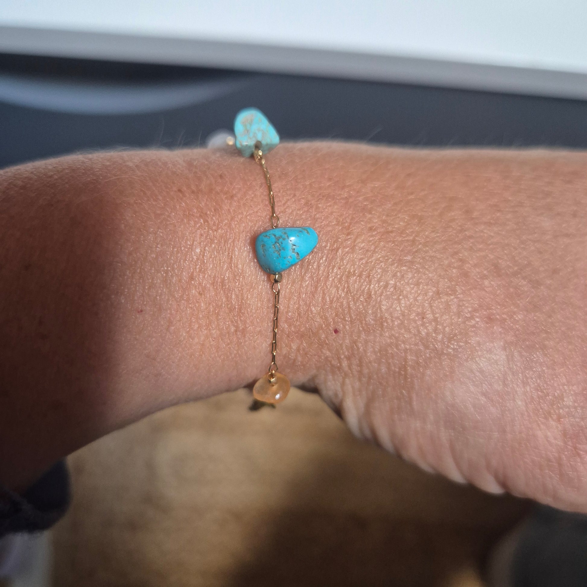 Joli bracelet en cuivre parsemé de pierres naturelle.