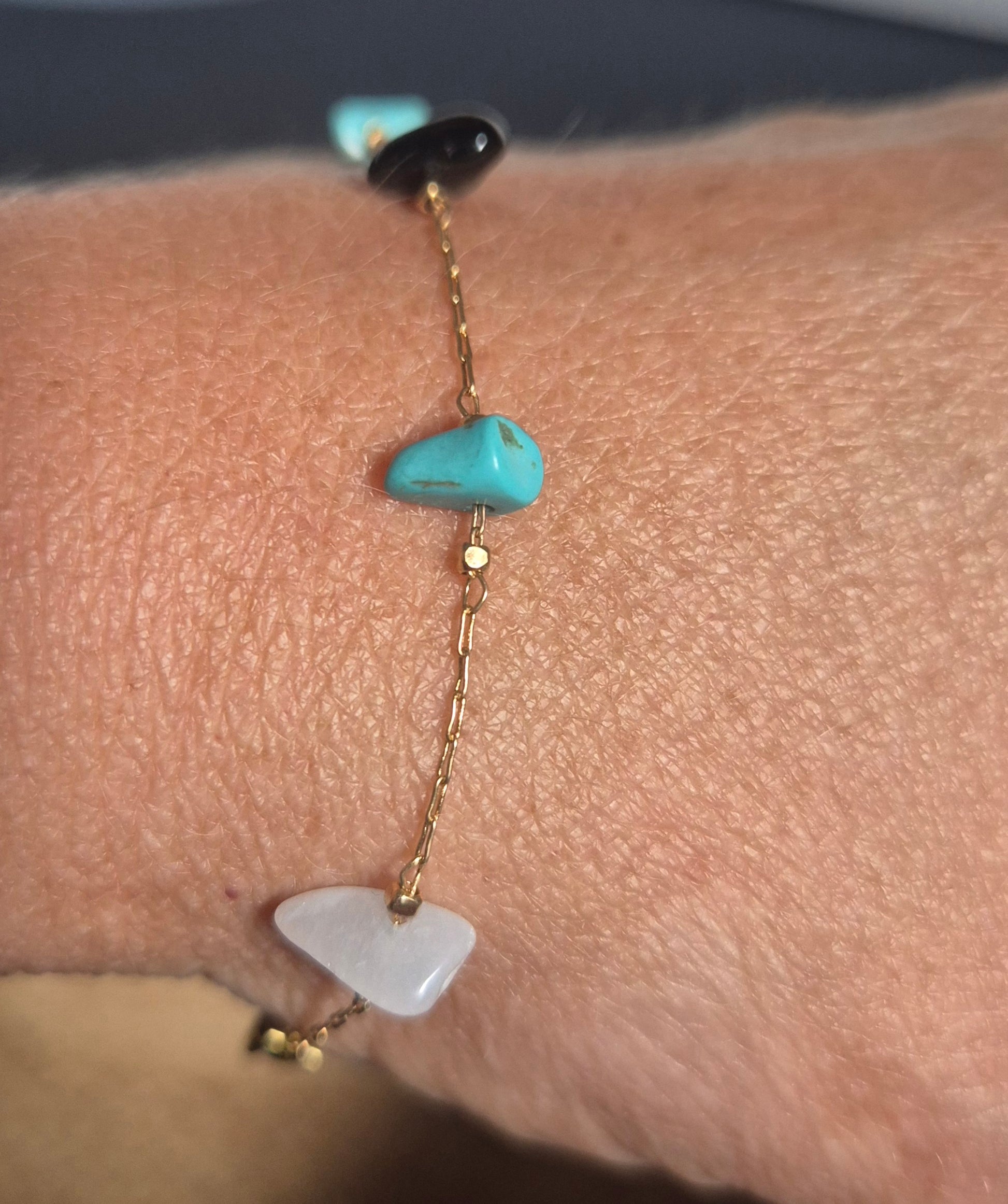 Joli bracelet en cuivre parsemé de pierres naturelle. Très joli rendu.