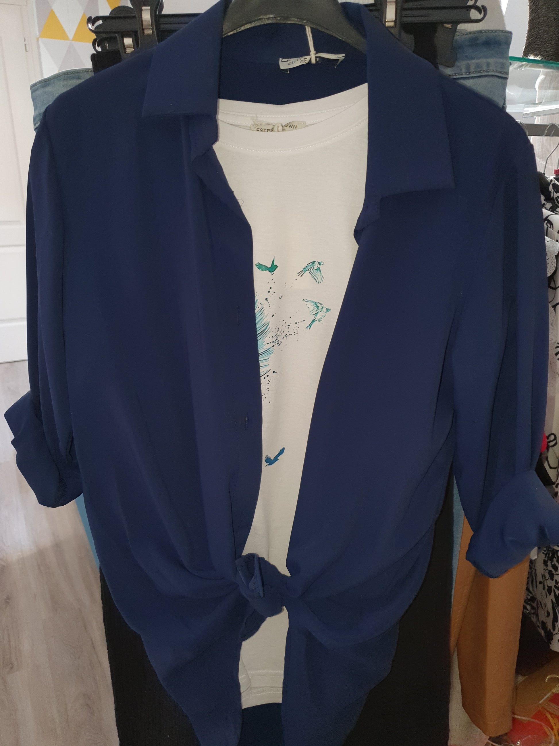 T-shirt motif plumes et oiseaux coloris bleu/vert.