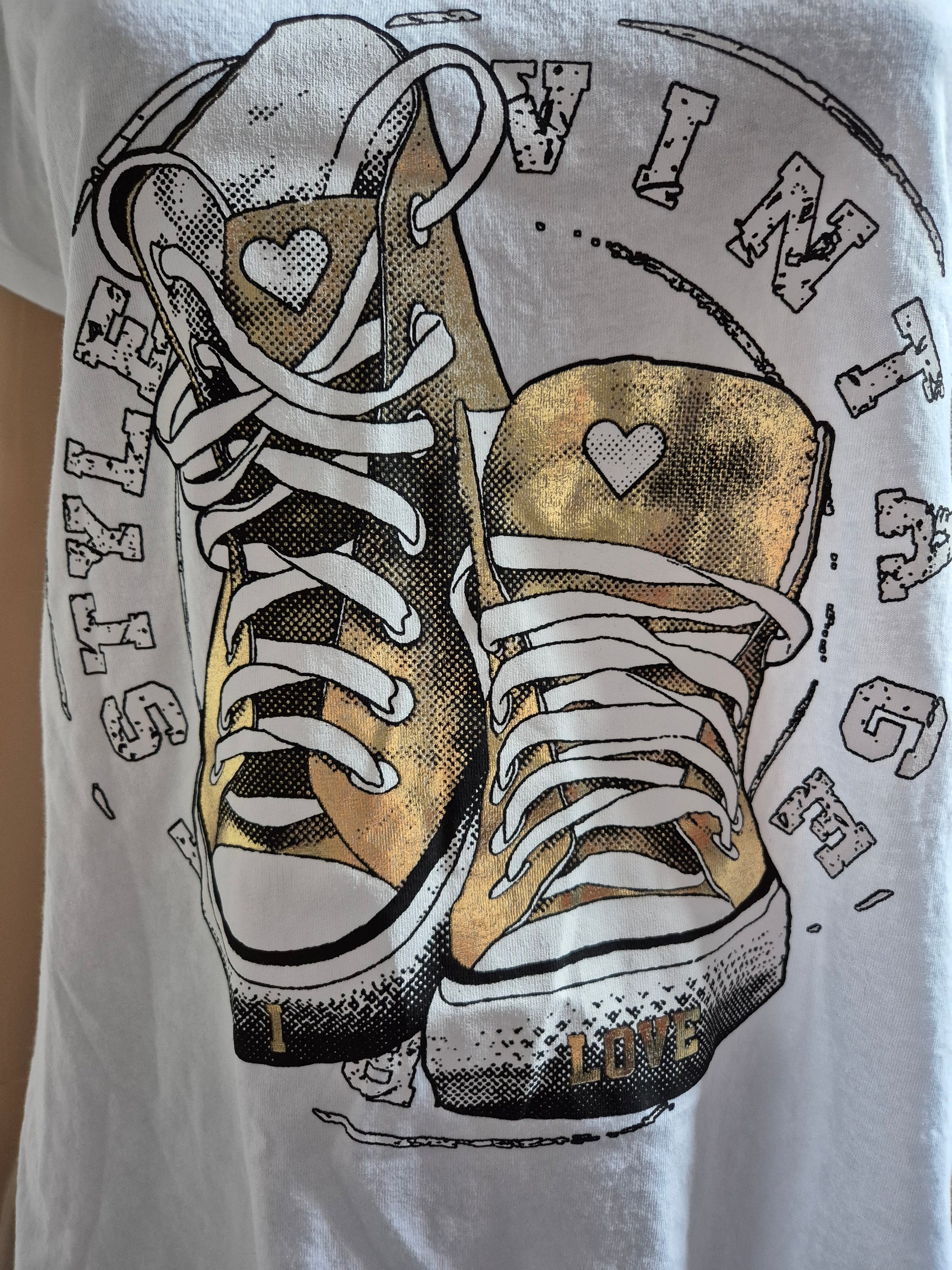Joli t shirt col V manches courtes imprimé basket.